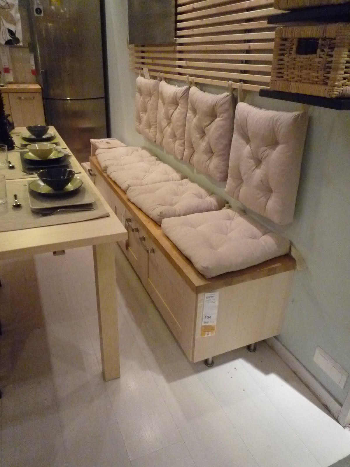 Peças multiuso sempre são facilmente adaptadas a ambientes de dimensões reduzidas. Um banco que serve para armazenar os utensílios é uma opção bacana para este espaço.