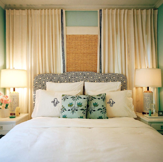 Sinta-se livre para escolher qualquer modelo de cabeceira, pois o segredo do bom resultado reside no tratamento que você dará à cortina e à parede atrás.