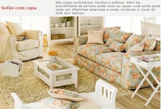 É claro, a capa de sarja branca, como na foto abaixo, se adapta bem à maioria dos ambientes e modelos, é de fácil manutenção e resistente. Mas não é a única opção.