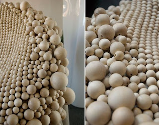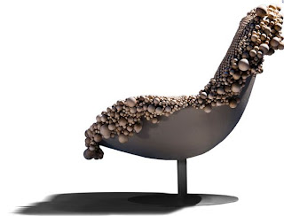Há espaço até para nuvens na feira de Milão... Poltrona da Moroso, com design de Tokujin Yoshioka. Olhando assim, a confecção não lembra aquelas capas enrugadinhas cheias de elástico???