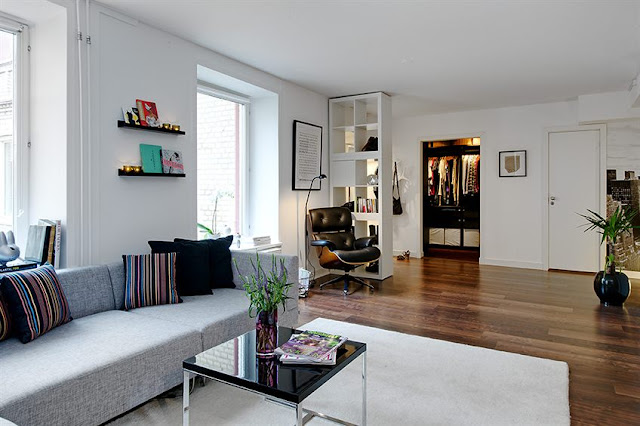 Meninos e meninas, eu posso apostar que vocês vão amar a decoração desse apartamento! Será que estou errada? Quando o vi, na hora já pensei: até parece decoração de apartamento brasileiro! Olha só: a gente aqui no Brasil gosta muito de tons sóbrios, móveis simples, de linhas retas; também é super comum a gente ver muita marcenaria linda, planejada, bem acabada, né? O apartamento tem 74m2, mas parece ser muito maior.