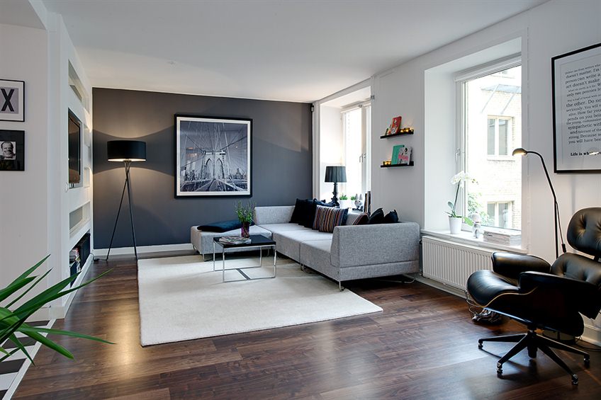 Meninos e meninas, eu posso apostar que vocês vão amar a decoração desse apartamento! Será que estou errada? Quando o vi, na hora já pensei: até parece decoração de apartamento brasileiro! Olha só: a gente aqui no Brasil gosta muito de tons sóbrios, móveis simples, de linhas retas; também é super comum a gente ver muita marcenaria linda, planejada, bem acabada, né? O apartamento tem 74m2, mas parece ser muito maior.