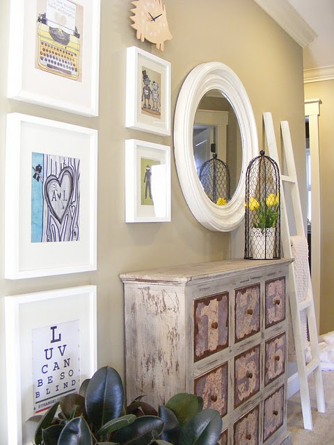 A dupla de quadros brancos muito singelos que ficaram lindos sobre parede mais escura