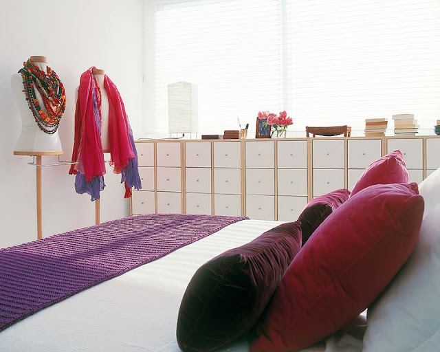 Muitas gavetinhas para guardar tudo e os bustos de manequim para usar como cabide