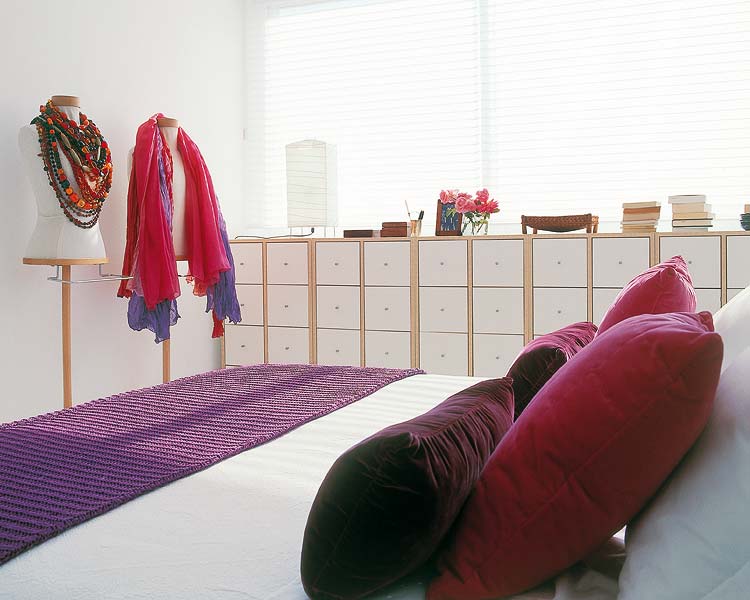Muitas gavetinhas para guardar tudo e os bustos de manequim para usar como cabide